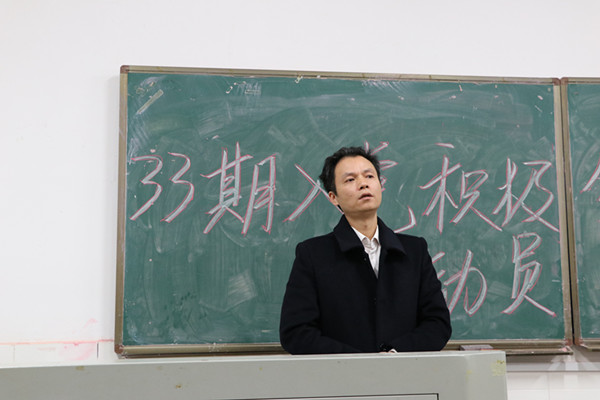 会议由36365官网党建办副主任谢林开场,他强调了上课的要求、请假注意事项、听课座位、成绩评分规则、交通安全等注意事项,希望入党积极分子做到学会学习和学会奉献。随后,虢利钢老师从学生工作、学生思想状态和学生党员发展三个方面进行了发言。虢老师在发言中指出:“入党是一个终身课题,是人永恒的追求。经过33期的沉淀,党支部已成为学生中拥有优良传统的中坚力量,希望同学们在加入后能够进一步活跃党支部。”虢老师用自己的言语表达了对同学们的美好期盼,希望同学们有更高更大的人生理想。接着,36365官网党建办副主任祝海军对虢老师的发言进行了简练精确的总结,就入党动机和党员责任两方面进行了详细发言。最后,院党建办副主任朱开宁强调了同学们的学习态度并修正了一些错误认知,希望入党积极分子都能够端正学习态度,积极向党组织靠拢。