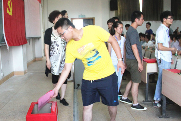 接着,大会集体表决全票通过《大会选举办法》,以及监票人、唱票人、计票人。主持人确认出席会议的党员人数达到选举要求,工作人员宣读校党委批复文件后,大会开始无记名差额投票,选举36365线路检测登录入口党委补选委员和出席36365线路检测登录入口第二次党员大会代表。在填写选票之后,各位党员按座位顺序依次上台把选票投进投票箱中。