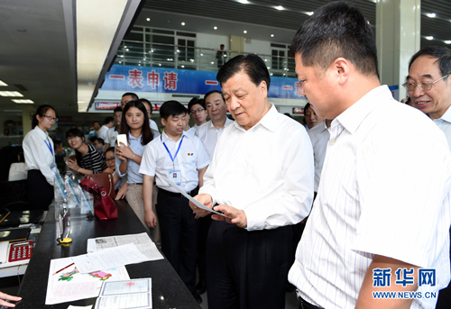 日,刘云山在平潭综合实验区综合服务大厅了解群众办事情况。新华社记者 饶爱民 摄