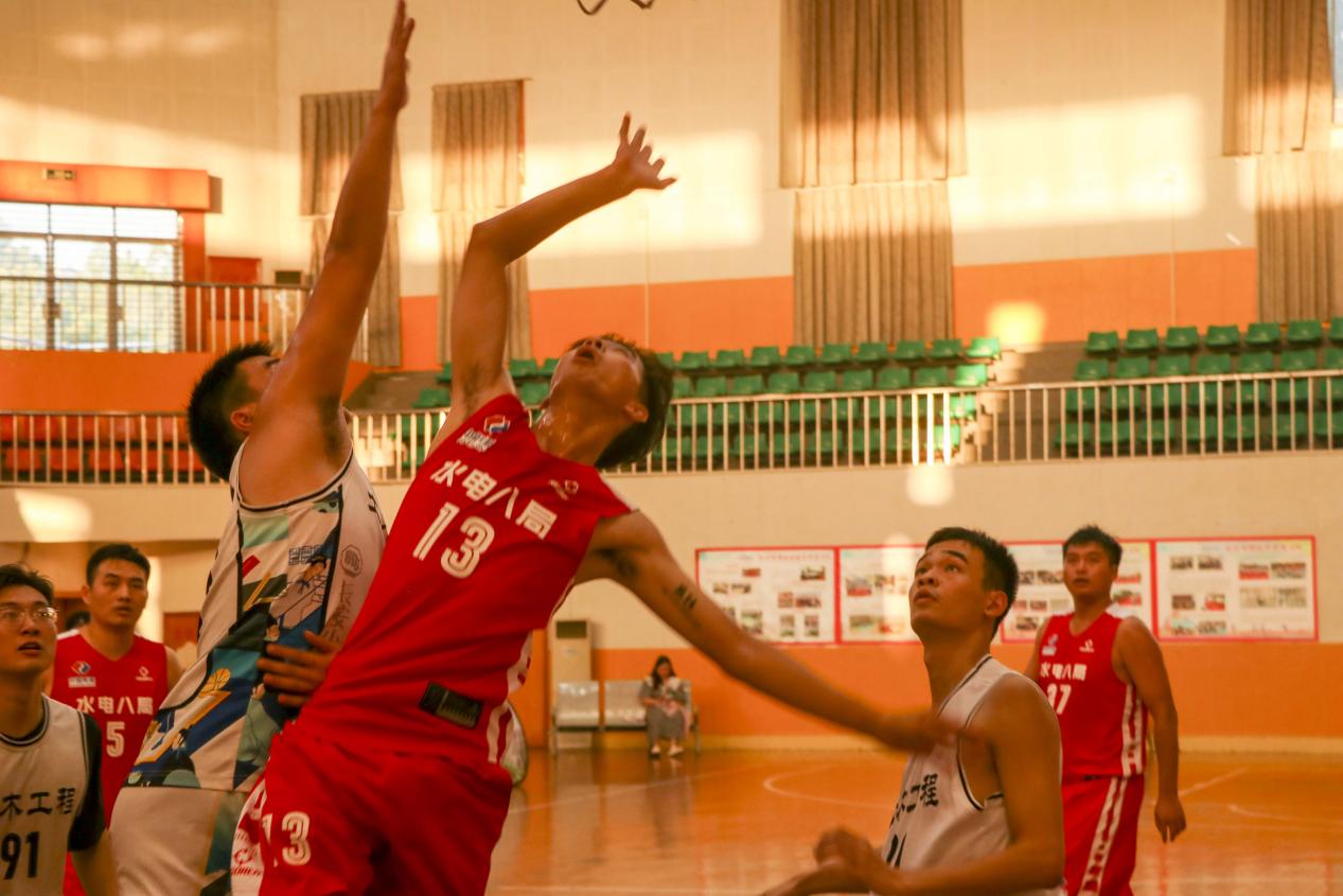 双方队员于赛前相互握手,进行友好交流。随着裁判的一声哨响,比赛正式开始,高高抛起的篮球点燃了本场比赛的激情。由水电八局成员抢得球权取得先机,通过彼此间紧密的配合拿下本场第一次得分。经过来回多次攻防,一次又一次的碰撞与突破后第一小节比赛告一段落,水电八局以8分的优势取得领先。