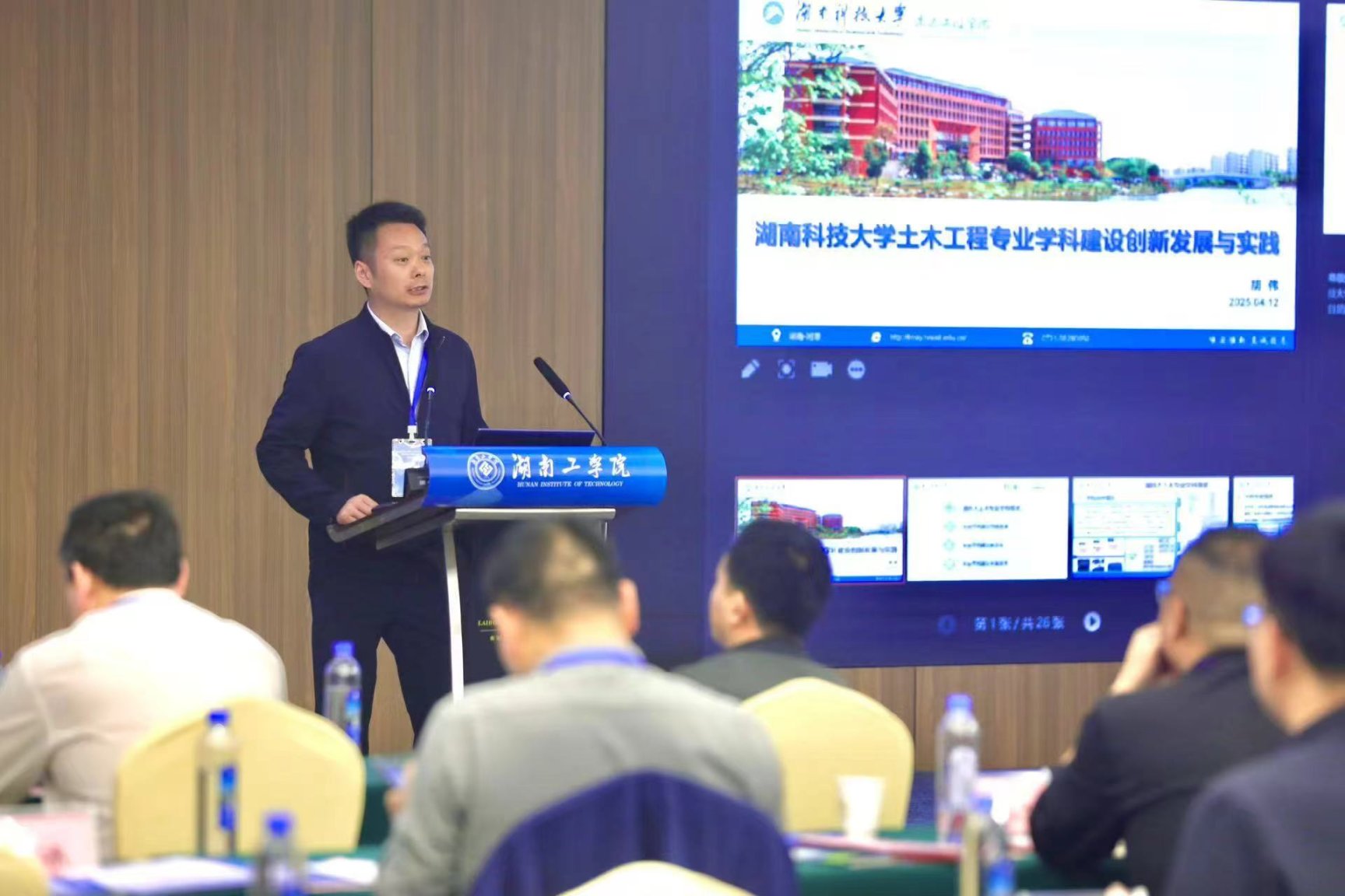 4月12日,湖南省普通本科高校土建水利与交通海洋类专业教学指导委员会2024年年会暨湖南省建设人力资源协会高等院校委员会2024年年会在衡阳丽波国际酒店会议中心顺利召开。大会以“智建新湖南:产教融合与土建类学科高质量发展”为主题,旨在深入贯彻党的二十届三中全会精神,全面落实湖南省“三高四新”发展战略,推动建设领域新质生产力的发展,积极应对传统土木工程教育与行业数字化转型之间的矛盾,进一步促进智能建造技术创新链与土建类专业教育链的深度融合。