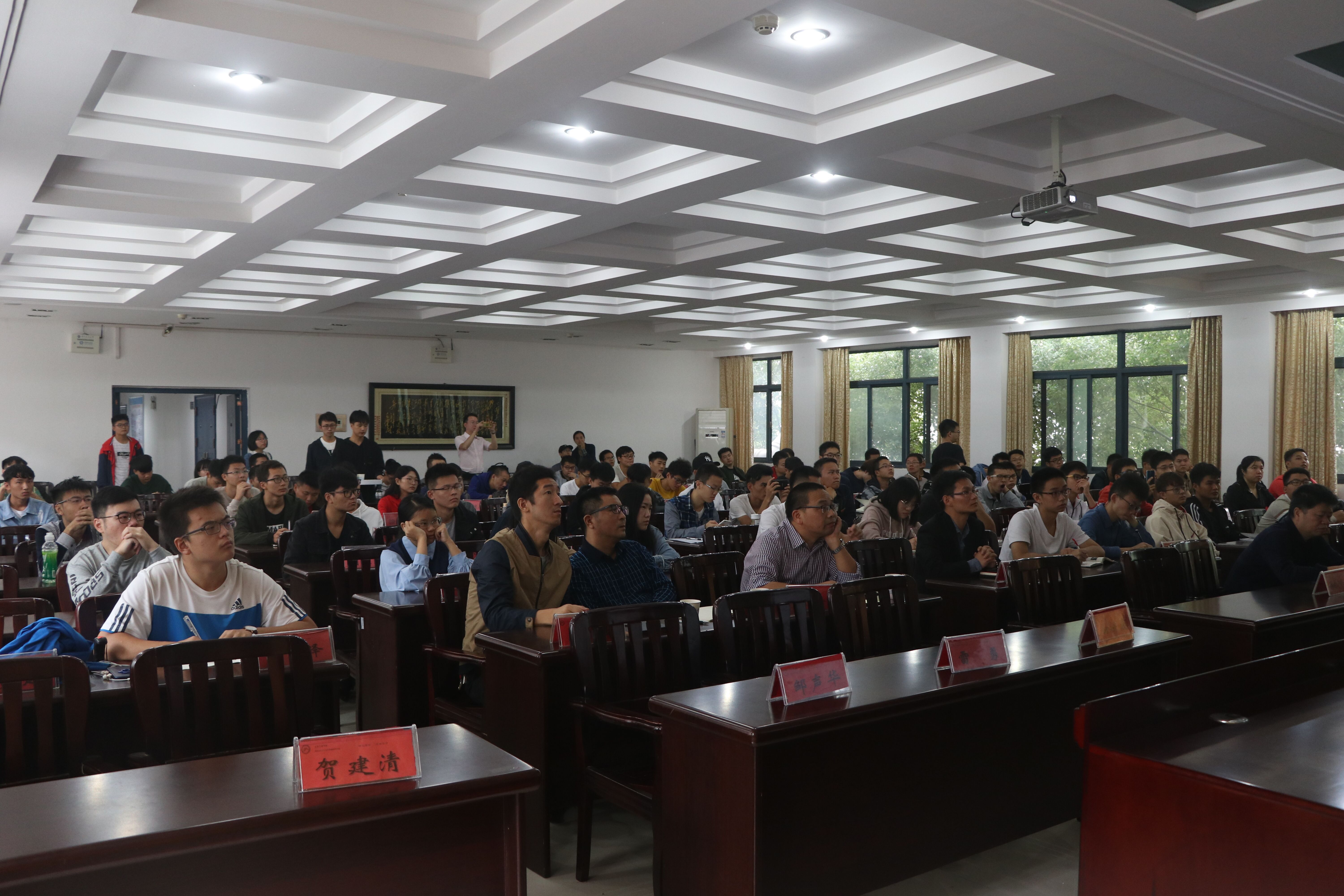 会议伊始,全体师生向主讲人蒋丽忠教授表示了热烈欢迎。随后,祝明桥院长从“地震作用下高速铁路上行车及结构安全防控”方面对蒋丽忠教授的成果进行了详细介绍。接着,蒋丽忠教授以“多动力作用下高速铁路轨道-桥梁结构动力学及安全防控技术”为报告主题进行了演说,并从研究背景、主要研究成果、总结、工程应用四个方面进行了论述,从高铁建设需求、技术疑难、立项情况等三个方面介绍了当前研究背景。当前的主要研究成果体现在实验系统的完善,分析、设计、安全评估的方法的进步及科研技术的提高等三大方面。蒋教授总结了四大主要创新点,提出了“两状态三水准”的抗震设防准则和自适应防风设计理念。在工程应用方面,蒋教授提到了高速铁路桥梁减震防震装置研究、常用跨度简支梁桥等问题。