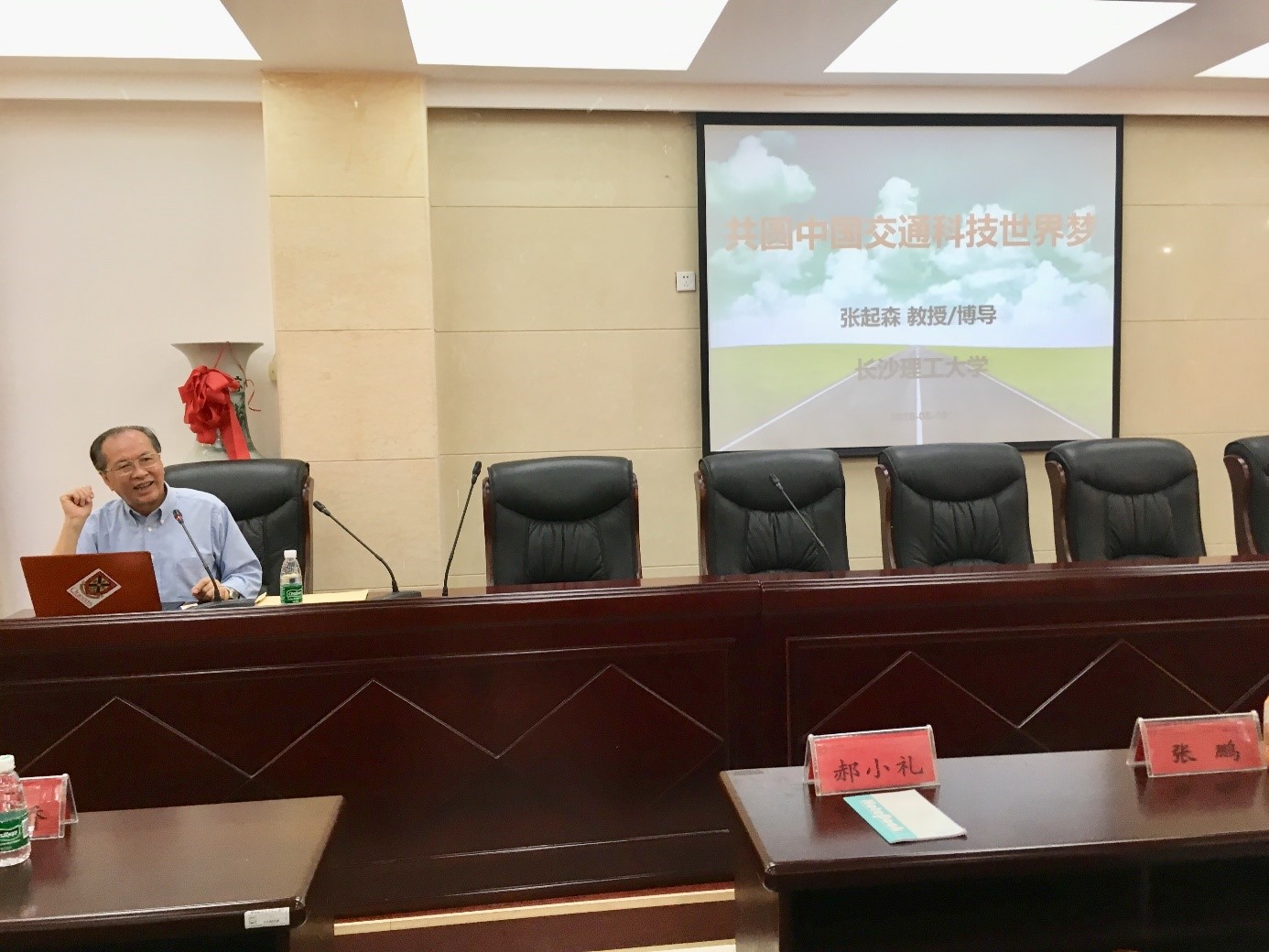 2018年6月10日上午10点,长沙理工大学张起森教授、博士生导师应邀来36365官网,在土木楼201为全院师生、特别是道路与桥梁工程系师生作”共圆中国交通科技世界梦“的专题报告。36365官网祝明桥院长、道路与桥梁工程系教师以及土木工程专业学生出席了报告会,报告由祝明桥院长主持。