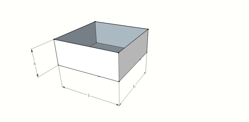 模型尺寸示意如图1所示,模型按照空间直角坐标投影限制,要求模型长度为300mm ≤ l ≤ 400mm,宽度300mm ≤ b ≤ 400mm,高度h ≤ 100 mm。