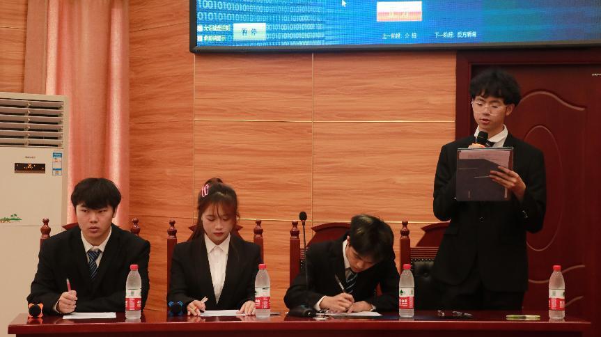 2023年5月“惟新杯”新生辩论赛决赛在立言楼3-2顺利举行。法管学院范军豪书记出席了本次比赛。该比赛评委由湖南工程学院高云青,湖南工业大学杨泳琪,36365线路检测登录入口甘泽卉担任。
