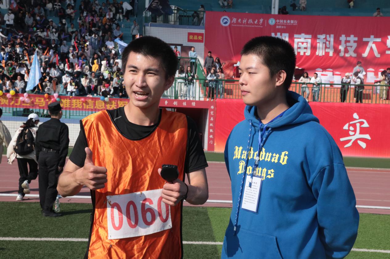 比赛开始前,两位选手专心地做着热身运动,摩拳擦掌,压腿扩胸。当发令枪声骤然响起,土木运动员迅速抢占先机。参赛选手们互不相让,相互较劲,但跑到后面无力感便如潮水般涌来,两位土木运动健儿,靠着自身的体能与意志力,在最后一圈时,猛然加速,以百米之姿冲向终点。最终双双以小组第一的傲人成绩进入决赛。
