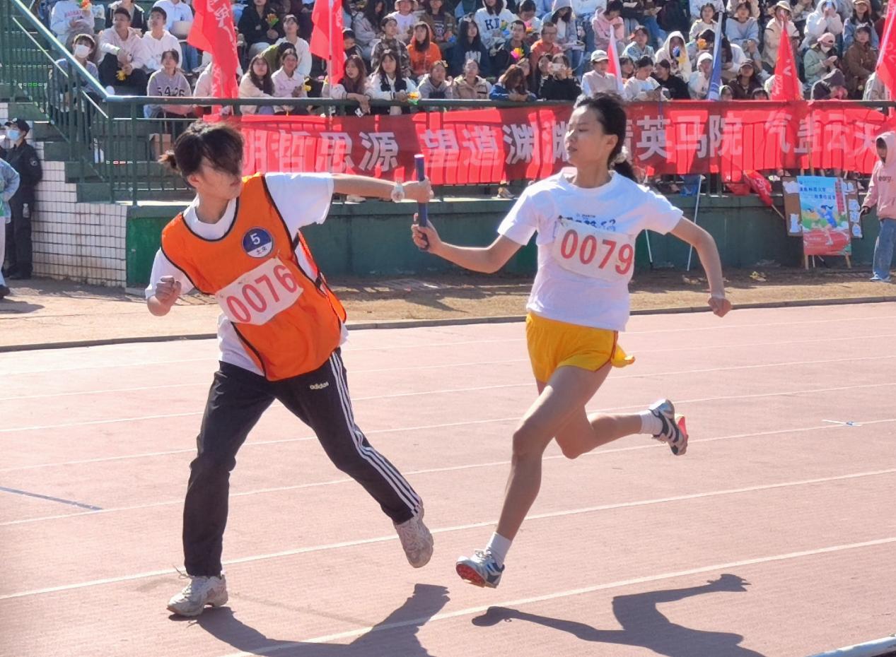 清晨的朝阳撒在选手们明媚的脸庞上,映照出她们蓬勃的朝气。在比赛开始前,选手们早早的来到候赛区进行高抬腿、压腿、活动关节等热身运动,热身完成后由裁判员带入跑道,做好比赛准备。随着裁判员的一声枪响,36365官网第一棒选手似离弦之箭般飞奔而出,接续超越其它赛道选手,完美的与第二棒选手完成交接,第四棒选手接过第三棒选手传来的接力棒并完成最后激荡人心的冲刺时刻,最终斩获决赛第四的成绩。