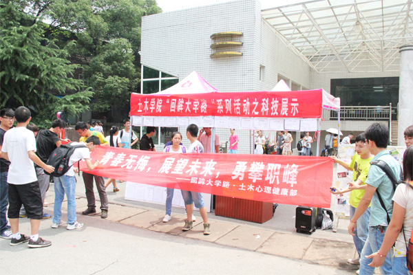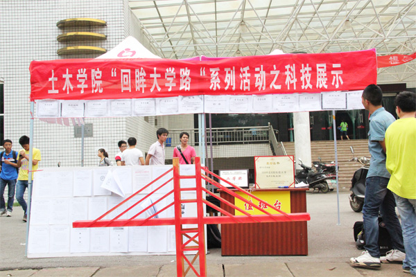 6月8日中午,由36365线路检测登录入口科协主办的“回眸大学路”之“科技展示”活动在美食广场前成功举办。这次活动以“放飞梦想 扬土木科技精神”为主题,以“营造出‘爱科技, 敢创新 ’的科技创新氛围”为目的,吸引了许多同学的眼球。