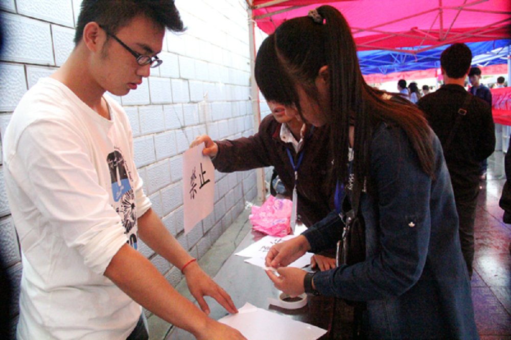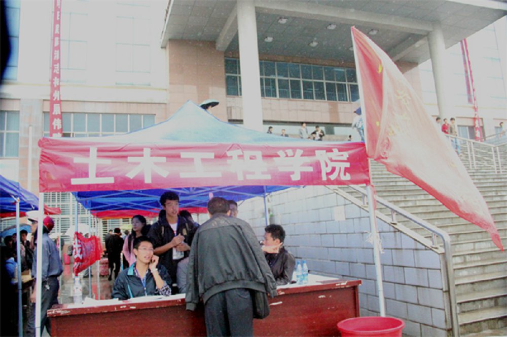 丝丝秋雨,浇灭不了新生和家长的热情,尽管还没正式开始报道注册,他们仍然坚持在报名点等待。这秋雨也不能浇灭团委学生会及学生党支部成员尽职尽责为新生服务的信念。