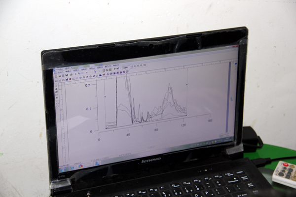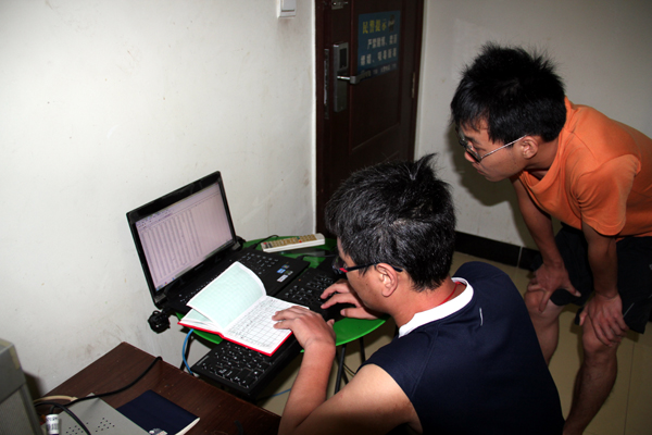 测量工作完成之后,小分队回到住所对数据进行了处理分析。首先将在野外测量的数据一一输入电脑,数据量比较大,队员们则轮流工作,而且十分认真仔细,以免输入失误。数据全部输入之后,他们使用了一款专业的电脑软件对数据进行了处理,还绘制了专业图样,并通过图样找出了异常点(即有可能存在地下水)。