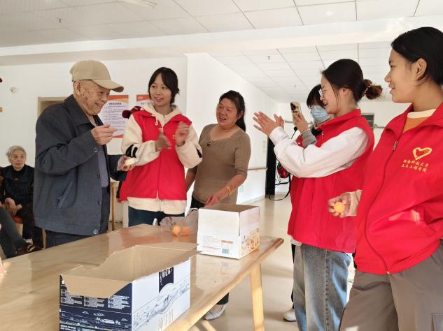 活动中,志愿者团队精心准备了丰富多彩的文艺表演和互动游戏,并陪同指导老人们做康复操,用实际行动传递温暖和关心。他们不仅倾听老人们的故事,让老人们感受到了陪伴的快乐,还帮忙打扫房间卫生,为老人们营造整洁舒适的居住环境。现场气氛欢乐温馨,老人们对同学们的付出十分认可和感谢。