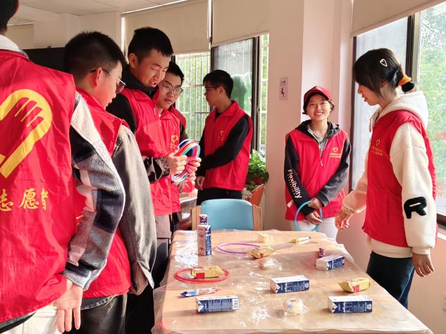 ▲志愿者准备互动游戏