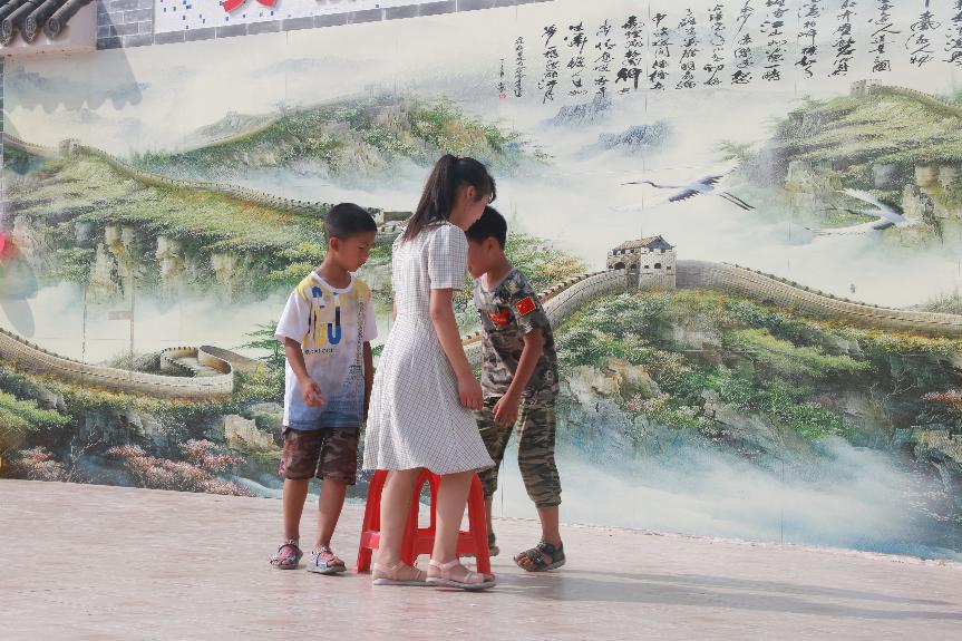 志愿者和小朋友们正在为大家表演舞蹈《向快乐出发》