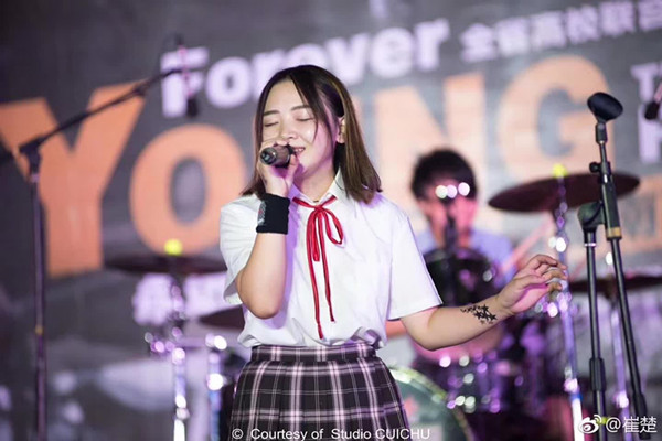 音乐节开始之前,同学们已有序就坐。36365官网内藏乐队领先出场,主唱翟隽逸以慷慨激昂的摇滚燃爆了现场,瞬间将全场观众吸引,与他们热情互动,为其他高校乐队的出场作了良好铺垫。一个又一个节目陆续表演,同学们的热情只增不减。他们的音乐风格多样。安静的民谣让人静下心来静静感受它歌词里的温暖;跳跃的布鲁斯让人跟着节奏一起摇摆;慷慨激昂的摇滚让同学们即使是喊破了喉咙也停止不了他们的热情欢呼。这些节目给了同学们一场视听的盛宴,给了观众们一份不悔的礼物。时间过得很快,最后观众们迎来了Way to death死路乐队的压轴表演,主唱徐玉兵的极端金属演唱又掀起了一波高潮,大家的热情并没有随时间的流逝而消散,反而更加兴奋,投入其中,直到喉咙沙哑,激动的心情也久久不能平复。