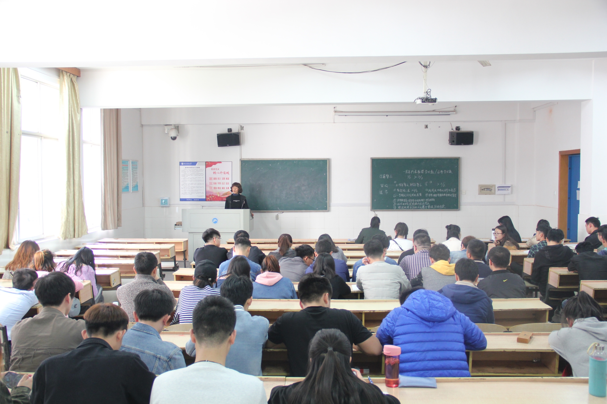 杨钋平首先从学生的现状出发,指出部分同学曾多次挂科,学分绩点不够的问题,并建议他们给予高度重视,弄清自己的挂科数目,以此制定相关目标。接着,她又给同学们提了一些建议:平时要早睡早起,保持良好的精神状态;从思想上重视学习,多去图书馆;体谅父母,努力学习 ,回报父母。随后,辅导员罗佳着重讲解了学分绩点的算法,解释了学校留级、退学等规章制度,并希望同学们能杜绝舞弊,扎实学习。接着,她强调:“安全是最重要的,要谨防校园贷,防盗,防骗,防传销。”最后,同学们一起加入了老师组建的“我们毕业吧”微信群,会议在掌声中圆满结束。
