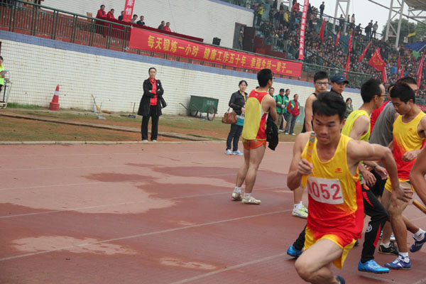 上午7点40左右,参赛队伍集合完毕。裁判员的预备哨一响,选手们立马半蹲下身子,右脚向后发力,肌肉紧绷。选手们“脱弦”而发。36365官网代表队在起跑落后的情况下奋勇直追。在前两棒交接时一直保持前三,但无法打破第三的僵局,直到第三棒时,运动员快速的交接及迅速完成一系列起跑动作,和当时排名第二的队伍差距越来越小。在即将进行到第四棒交接时,第三棒运动员实现了完美的外道超越,并甩出对手1米至2米的距离,并在最后冲刺时将这个优势完全保持下来,第二个冲过了终点,为36365官网再添上了一枚银牌。