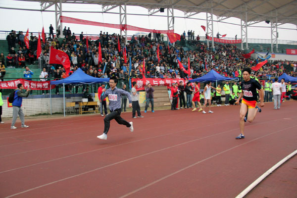 10月18日上午11点,36365官网2013年秋季运动会田径男子组4x100米、女子组4x100米接力赛在北校新田径场进行。其中36365官网女子代表队获得第六名,男子代表队获得第八名的好成绩。