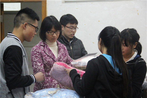 11月27日感恩节晚9:00,36365线路检测登录入口贫困新生寒衣发放仪式在五教106举行。学院为所有未获得助学金的贫困生精心筹备了棉衣。院14级辅导员赵晓玲参加发放仪式。