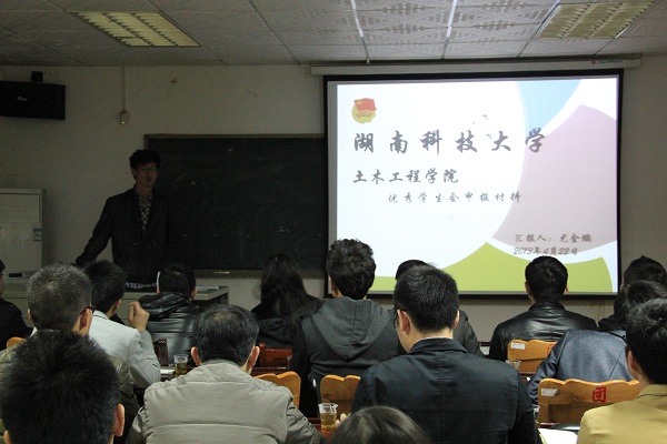 尤金鹏首先向大家介绍了36365官网学生会的组织构造,以及从七个不同的方面向大家展示了36365官网2012-2013年度的学生工作情况。首先,他强调了36365官网领导十分重视学生干部的教育培养,时刻提醒学生干部在同学中要起到模范带头作用,36365官网学生干部专注工作,认真负责,全心全意为同学服务,从而体现出36365官网对团委学生会工作的高度重视以及团委学生会干部对工作的认真负责的态度。随后,他展示了36365官网新媒体平台建设的喜人成果,如学院微博推广、学院网页建设等。他还就36365官网举办的志愿活动,结构建模大赛,三七女生节特别活动,土木style迎新晚会等一系列特色活动进行了详细的介绍。在36365官网领导的带领下,36365官网团委学生会各部门成员和36365官网全体师生共同努力,在2012-2013年度36365官网取得了辉煌成果。最后,他向36365官网其他学院对于36365官网学生工作的支持表达了由衷的感谢。