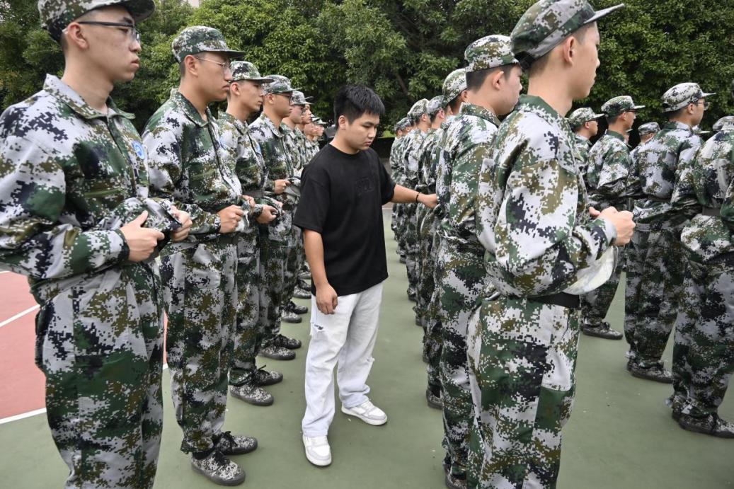 新生接受军容风纪检查