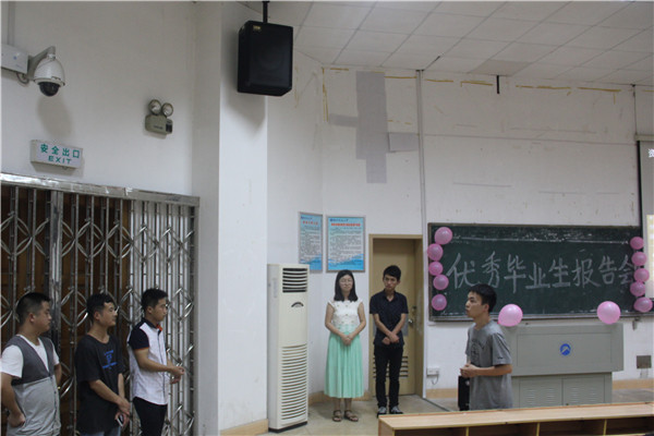 为了帮助同学们学习先进人物,更加合理地规划大学生活。6月12日、16日、19日分别在一教404,五教2-3举行了优秀毕业生报告会。出席报告会的老师有易贵元,罗小红,虢利刚等和优秀毕业生詹辉,刘雅静,刘鹏,房雅楠等以及11,12,13级全体学生。