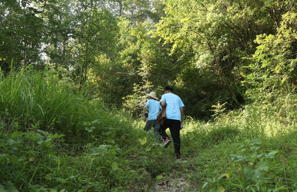 实践团队带上专业的测量仪器,行过略为曲折难行的小路,终于到达了昨日踩点勘测到的需进行风险评估的边坡下,趁着毒辣的阳光还未照射到此处,志愿者们“兵分两路”,一路立即着手安装,调试全站仪,一队则要爬到坡上进行取点,上坡有两条道路,边坡的左面虽然路程短却相对危险陡峭,右面路程稍长相对安全平坦,志愿者们牢记指导老师安全第一的嘱托,道而不径,走上了右边的山路。他们小心翼翼,互相搀扶,伸出援手的画面让人暖心,身处一个共同的志愿者团队,就应该发扬互帮互助,团结友爱的精神品质。