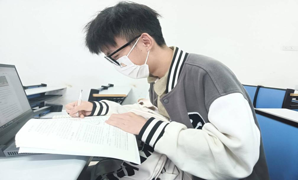 他深知,学习是学生的首要任务,拥有良好的知识储备和丰富的学习经验能让自己在未来的社会生活中更加独立。在课堂上,他坚持认真听讲,紧跟老师讲课节奏,课后找老师答疑,不断巩固练习。此外,他还利用周末的时间去空闲教室自主学习。在坚持中成长,在坚持中收获,大一学年,他的综合成绩专业排名第一,并通过了英语四级考试。