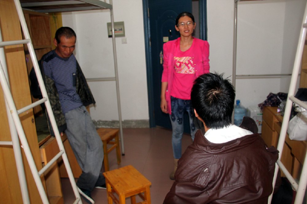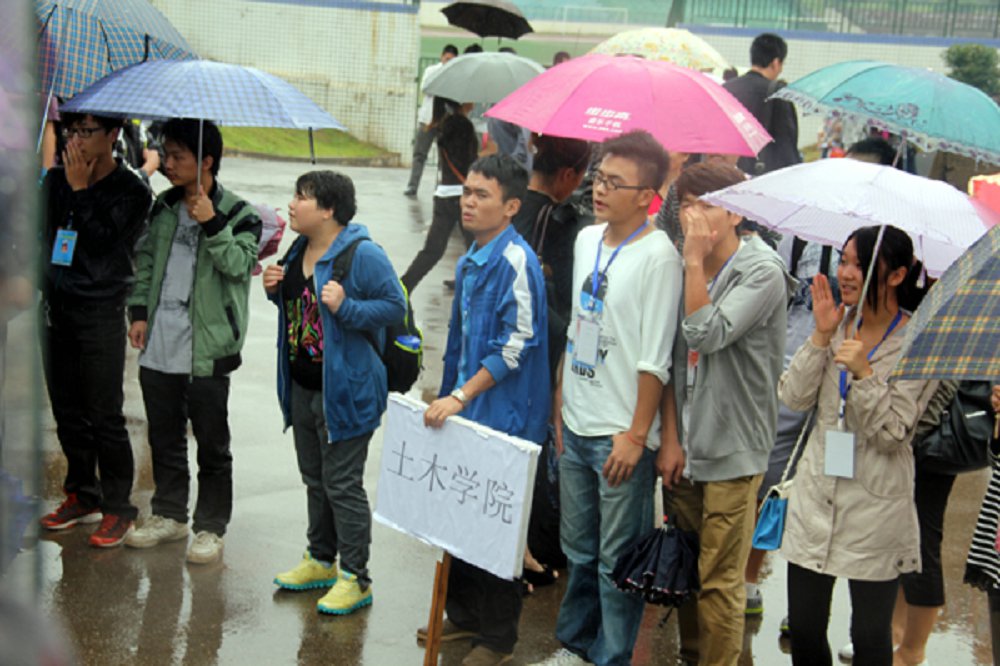 新生在南校注册完后乘专车来到北校体育馆前,在北校体育馆前面聚集了很多迎新志愿者,看到迎新车的到来,现场一下子就变得热闹起来,他们举着写有“土木学院”的牌子一路狂奔,希望学弟学妹能在下车的那一刻看到他们感受到学长学姐的热情,体验到“家”的温暖。当看到有新生从车里走出来时,志愿者就晃动着牌子高呼“土木学院、土木学院”。一位独自来报到的新生在志愿者的带领下顺利地完成了报到注册、领取了卧具、军训服、钥匙。一路上她好奇地向志愿者询问大学生活是怎样的,如何加入学生会,怎样参加社团等问题,好似要迫不及待地投入大学生活,陪同的志愿者耐心的为她一一解答。在采访中,当被问到为什么敢独自一个来报到的时候,她笑着说:“其实在没到学校之前还真的有些担心,不过一下车看到你们的笑容,感受到你们的热情,觉得那些担心完全是多余的,有你们真好!”