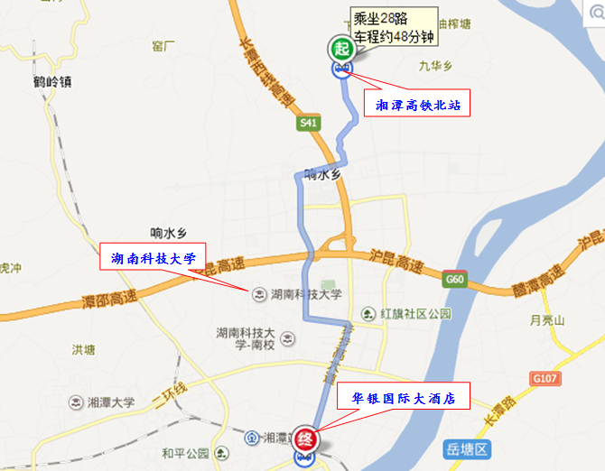 4、乘车路线:湘潭高铁北站—湘潭华银国际大酒店