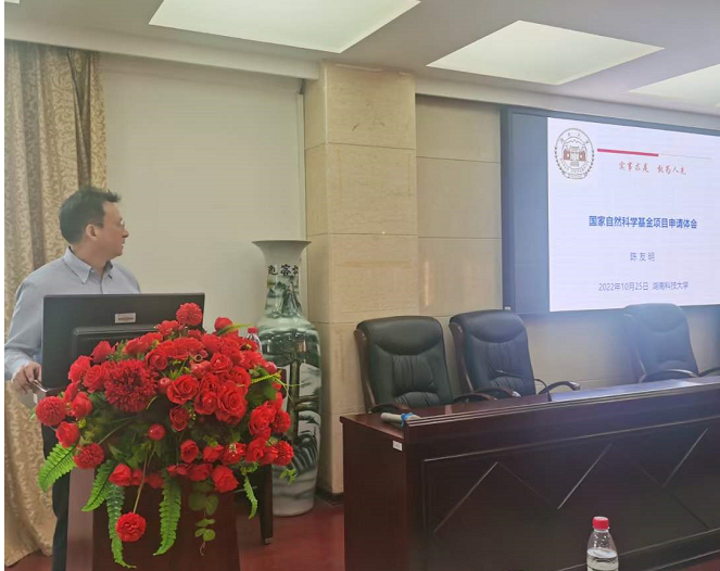 陈友明教授首先讲解了基金申请书主要内容的撰写方法,包括项目类别选择、项目名称、摘要、立项依据、科学问题的确定、研究方案等,并与参会教师进行互动交流,对申报细节问题进行了深入讨论。