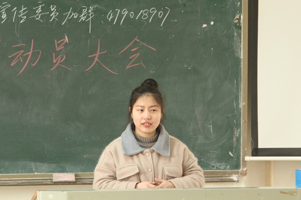 会议开始,由社团部部长吴子林上台讲话,她强调大学生应正确对待学习与娱乐,强调学习在大学生活中的重要性,鼓励大家努力学习,重视课堂笔记,做到学习娱乐两不误。随后,宣传部部长刘创创上台发言,讲明关于本届课堂笔记大赛的参赛时间和作品要求等相关注意事项,他详细的交代了笔记大赛的具体流程,同时鼓励大家积极参与本次活动,丰富大学课余生活。最后,网络部部长舒桐上台发言,向大家具体地介绍视频大赛,强调关于视频大赛的参赛要求以及作品内容等相关事宜,他倡导大家充分利用课后时间,重视本次视频大赛,并祝愿大家能够拍摄出好的作品,为学院争光。
