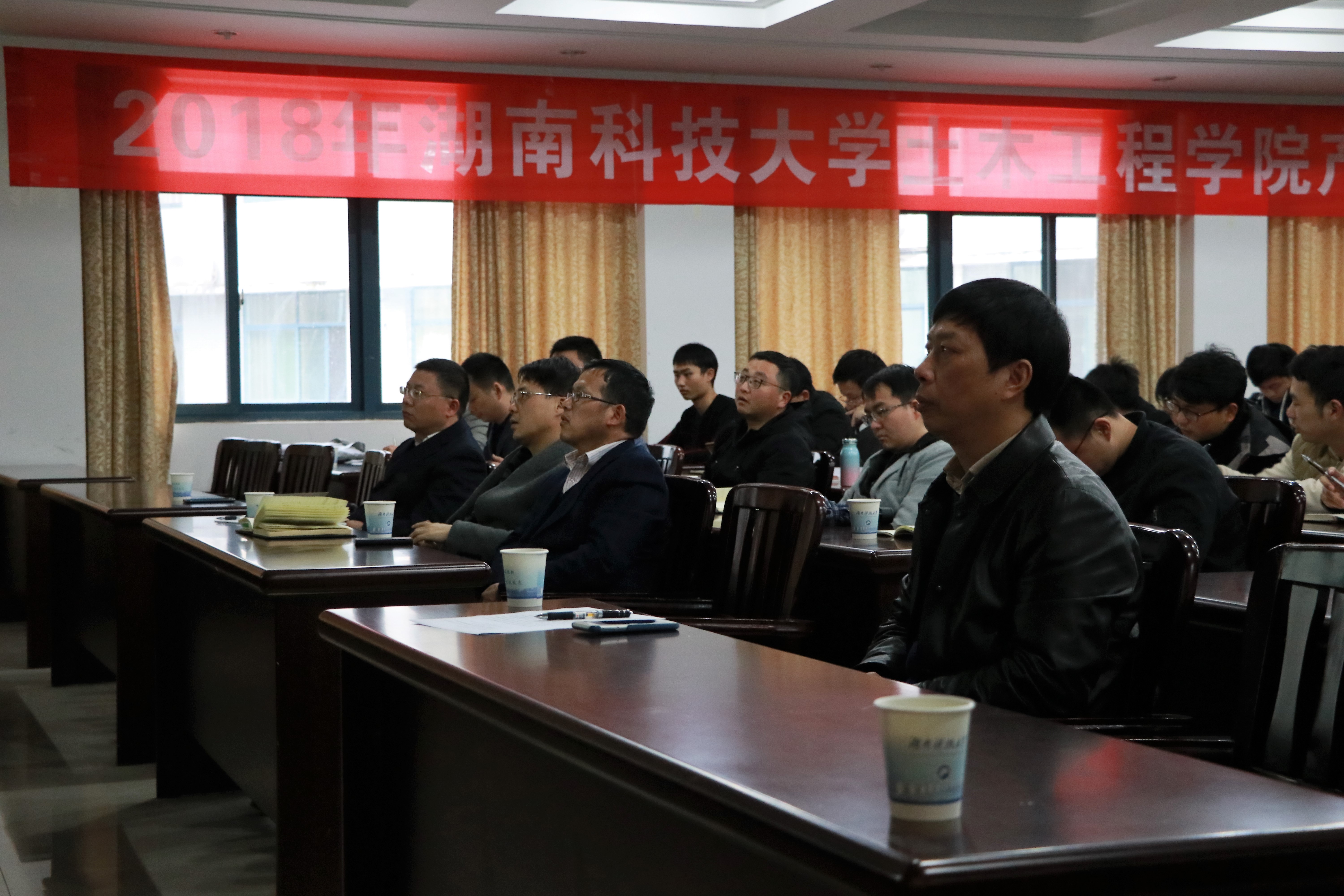会议伊始,陈书记简要介绍了黄教授并对他的到来表示欢迎。随后,黄教授直奔主题。他从跨海桥梁深水基础及海上风电深水基础两方面介绍了研究背景。接着,黄教授分别从桩箱基础水平和层状地基中沉井水平详细地讲解了摇摆动力阻抗,同时他也分析了沉井加桩复合基础动力响应以及冲刷对桩箱基础振动特性的影响。谈到桩箱基础稳态激振模型试验和波流水槽振动试验时,黄教授介绍了试验时所用到的各种仪器设备,并详细地分析了试验结果。接着,黄教授分析了琼州海峡双塔协作斜拉悬索桥深水基础的工程实例,并总结了报告内容。最后的提问环节,黄教授耐心而细致地回答了老师以及学生们提出的问题。