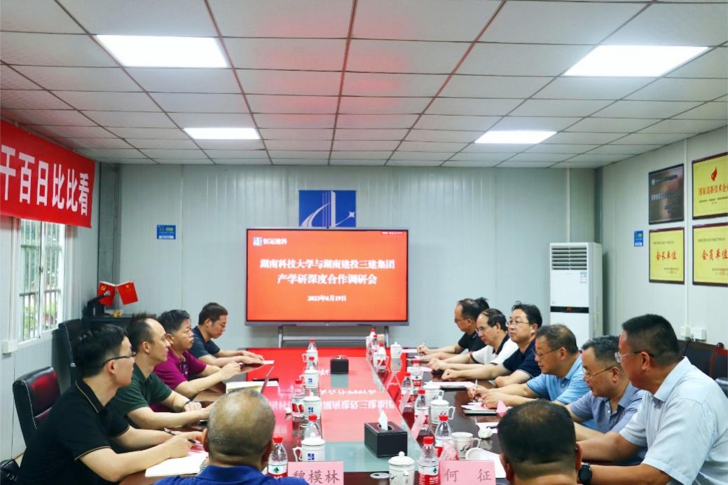 参观结束后,湖南建投三建集团总经理助理、恒运建科党支部书记、执行董事莫端泉主持了36365线路检测登录入口与湖南建投三建集团产学研深度合作调研会议。