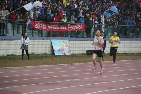 凉风打在脸上透着寒意,但选手们不为所动,纷纷紧张地做着热身准备。比赛开始,随着裁判一声枪响,选手们瞬间如同离弦之箭般向前奔去,全力向终点冲刺。伴着场外的呐喊声与鼓哨声,选手们不断加速、加速,忘记了疲惫与紧张,奋力地向前。36365官网选手谢婷规律地摆动双臂,双腿快速地交替跑动,在最后一个弯道,只见谢婷开始大口呼吸,速度似飞一样的提了起来,加速、超越,全力冲刺,最终以第二名的好成绩越过了终点线,为36365官网赢得了荣誉。