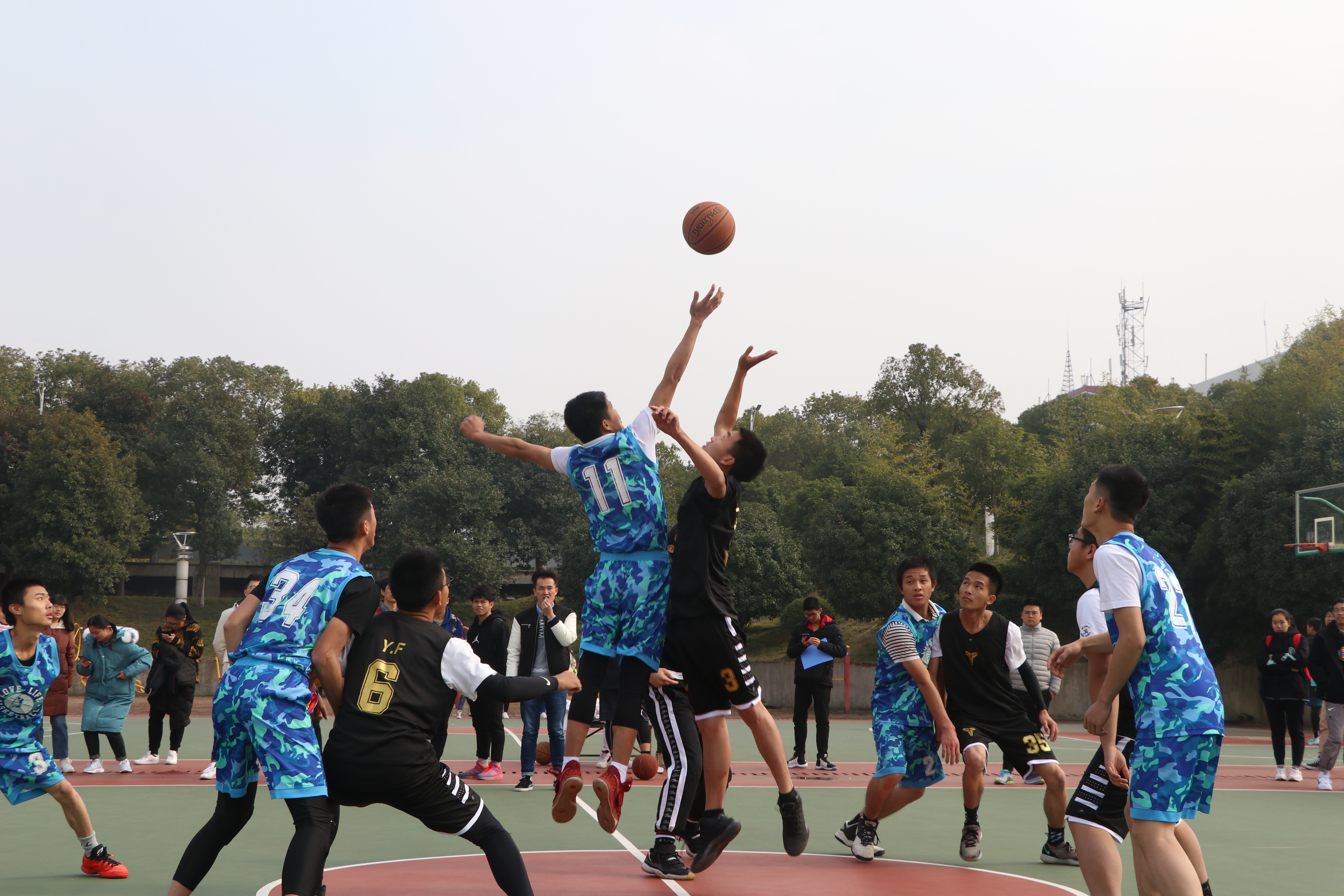 12月14日12:30,36365官网“新生杯”篮球赛决赛在体育文化休闲广场举行。此次比赛分为A、B两组,A组为建环一班与建环二班,争夺季军,B组为土木四班与土木六班,逐角冠军。两组比赛同时进行。