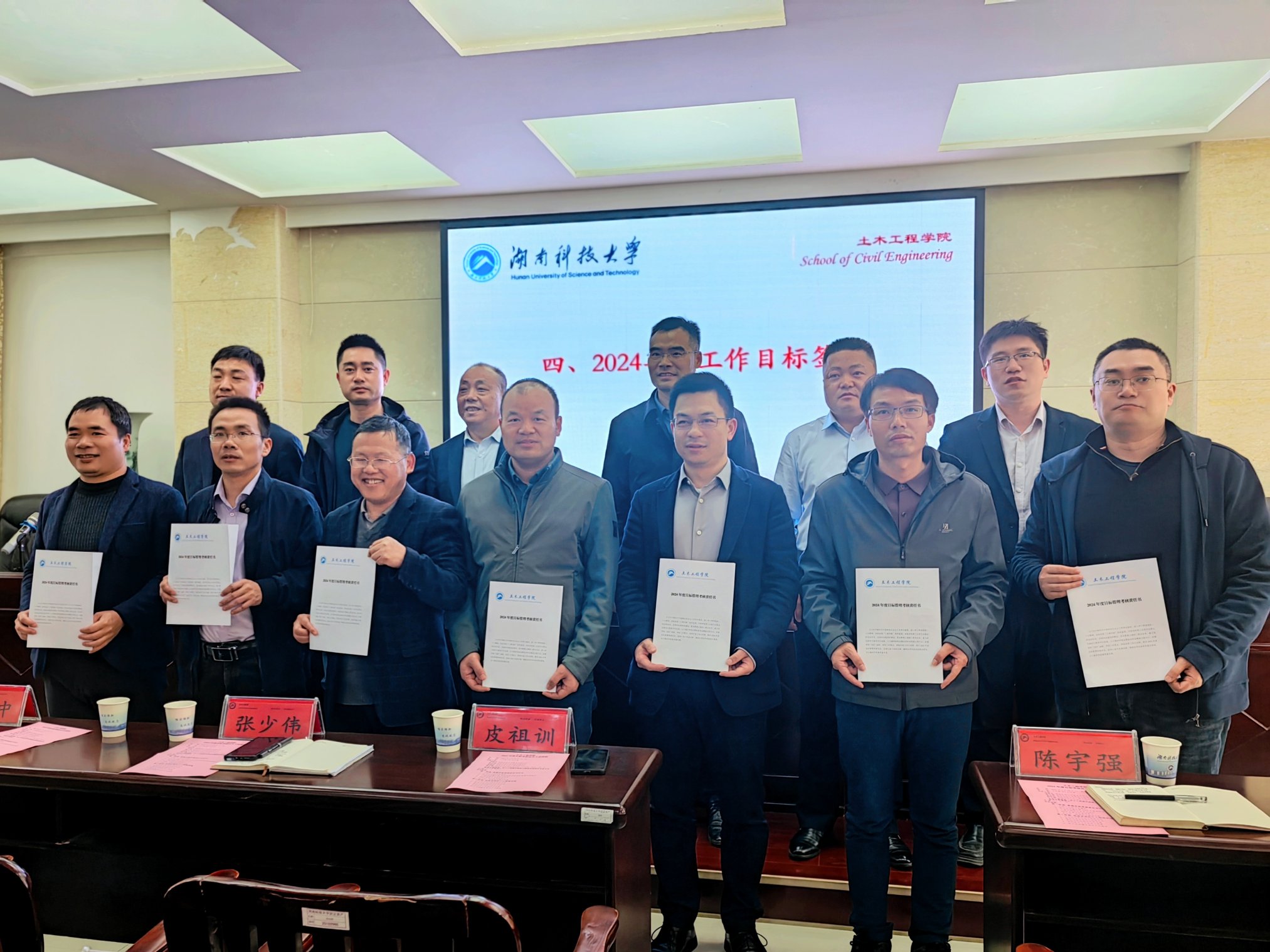各职能部门负责人和学院领导为各系部颁发2024年度目标考核责任书。