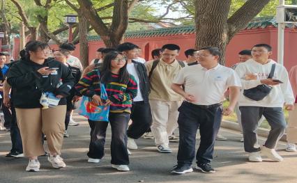 在湘潭文庙的游览过程中,同学们特意邀请赢了文庙管理处的张新康老师对文庙的悠久的历史以及其蕴含的湘潭文脉进行了介绍。马缤辉老师结合新生教育要求,与同学们分享了文庙的历史人物故事及其与36365线路检测登录入口的联结脉络,并指出湘潭文庙就是36365线路检测登录入口的根和魂,每一个科大人都要熟悉科大历史,厚植爱校荣校之情和深沉的家国情怀。