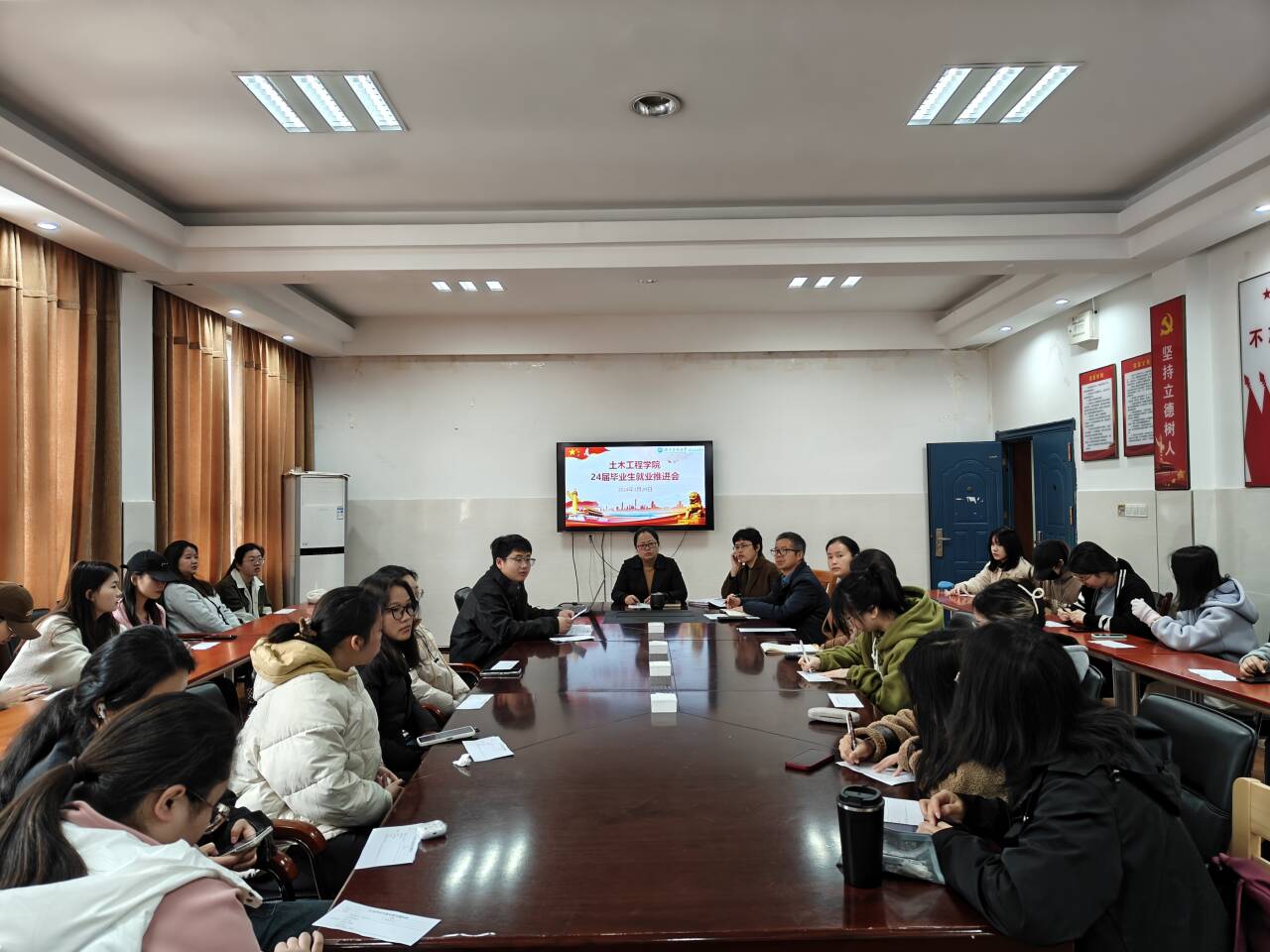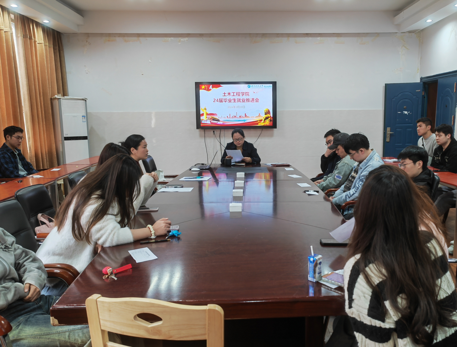 3月19日上午,学院党委于土木楼213会议室召开2024届毕业生就业工作推进专题会。学院院长孙洪鑫,院党委书记万文,岩土工程省重点实验室主任陈秋南,党委副书记陈笑,副院长郝小礼、陈林参加会议。会上,陈笑对当前整体就业形势以及36365线路检测登录入口毕业生的就业情况进行汇报与分析,希望凝聚力量,多方联动,共同发力,助推毕业生更加充分、更高质量就业。会上研讨制订了就业推进工作方案与举措,落实了具体责任与要求。孙洪鑫强调,就业工作要继续按照学校要求,进一步明确要求和目标,聚焦重点、多措并举,全力以赴做好2024届毕业生就业工作。