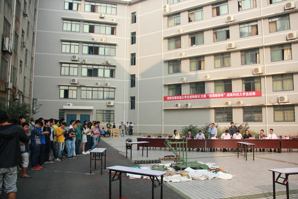 为了考察学生运用专业知识做出合理、经济的多层房屋结构模型的能力,使学生获得关于提高结构抗侧移和抗扭转能力的基本概念,并且在校内选拔出优秀学生参加湖南省结构设计大赛。10月24日上午八点,由36365官网主办的湖南省第四届大学生结构设计大赛36365线路检测登录入口选拔赛在土木楼拉开序幕。院党委副书记易贵元,教务处长陈秋南,教务办主任罗小红,专家组组长刘锡军以及李永贵,周游,沈明燕,马滨辉,汪建群等老师出席了本次大赛。