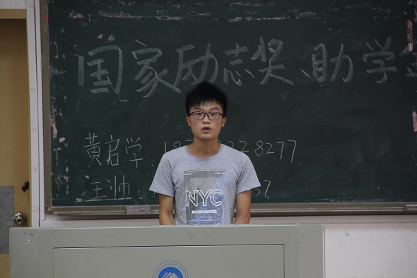 大会伊始,勤工助学部副部长王帅上台讲话。他首先为大家介绍了国家励志奖的评定要求、填表细则以及其他注意事项。然后,他再强调了助学金的有关事宜,交代了评定过程中的重点注意方面。最后,他留下联系方式,为保证各班对评定细则更加了解。随后,杨钋平发表讲话。她公开了国家奖学金的获奖名单,并鼓励大家努力学习,争取拿奖。在讲话中,她反复提到评定过程中的公平公正的重要性。将评奖过程的事例与同学们分享,以保证评奖的透明性。大会最后,勤工部部长刘立再次强调了会议内容重点,嘱咐各班团将会议内容告知班级同学。