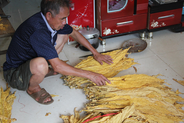 随后,实践队了解到,金口村的主要经济来源是种烟和烤烟,于是实践队又走访了村里的烤烟房和烤烟设备。走访过程中,村子里随处可见七、八十年代烤烟房,由于烤烟速度慢,质量差,危险性高等缺点在二十一世纪初就被淘汰废弃。此后由于技术的革新,烤烟房经过了两次升级换代后形成了如今的电脑程序控制,全自动化的烤烟房。谈及烤烟房的发展历程,村民房大爷满满的都是感慨和兴奋。根据村民的介绍,烤好的烟根据产出部位,烟叶颜色,完整度,霉制时间等方面可以划分为三个层次四十二个等级,出售价格也因此而大相径庭,从几元到二十几元一市斤不等。依靠种烟烤烟,村民们过着富足而勤劳的生活。