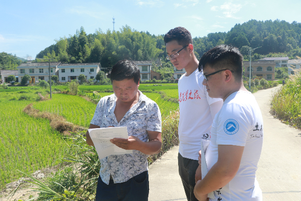 7月17日8:30,三下乡团队成员分成桥梁与道路两组出发前往调研。一组负责调查小河乡潭湾村桥梁破损情况,他们依次勘察了东风桥、风恒桥、安湾桥、村委会到高峰组的小桥和小岭桥四座桥梁并就地进行了民意调查。据民众反映,村委会到高峰组的小桥是孩子们上学的必经之路,但由于桥面过窄并且没有防护栏,孩子们以及接送的老人们的安全得不到保障,所以当地居民希望这座小桥能够得到修缮。另一组负责路况查看,首先查看的是潭湾组到枫龙组路段,然后是崎岖蜿蜒的乡村公路。成员们沿路骑行而上,可以看出这些路段都存在许多明显的安全隐患,例如:沿路无错车道、凸面镜,临崖处缺少防护栏,多处山坡存在滑坡隐患,并存在大面积路面塌方等现象。这一系列道路安全隐患问题的发现,让这个小组成员颇有感触,他们积极提出了各自的看法和相关建议。在三下乡成员积极努力的排查下,上午的工作很快就接近尾声。