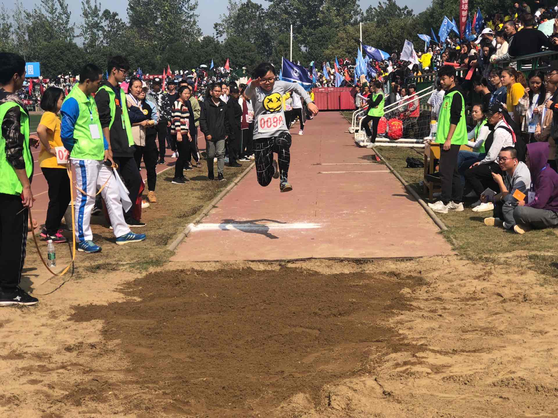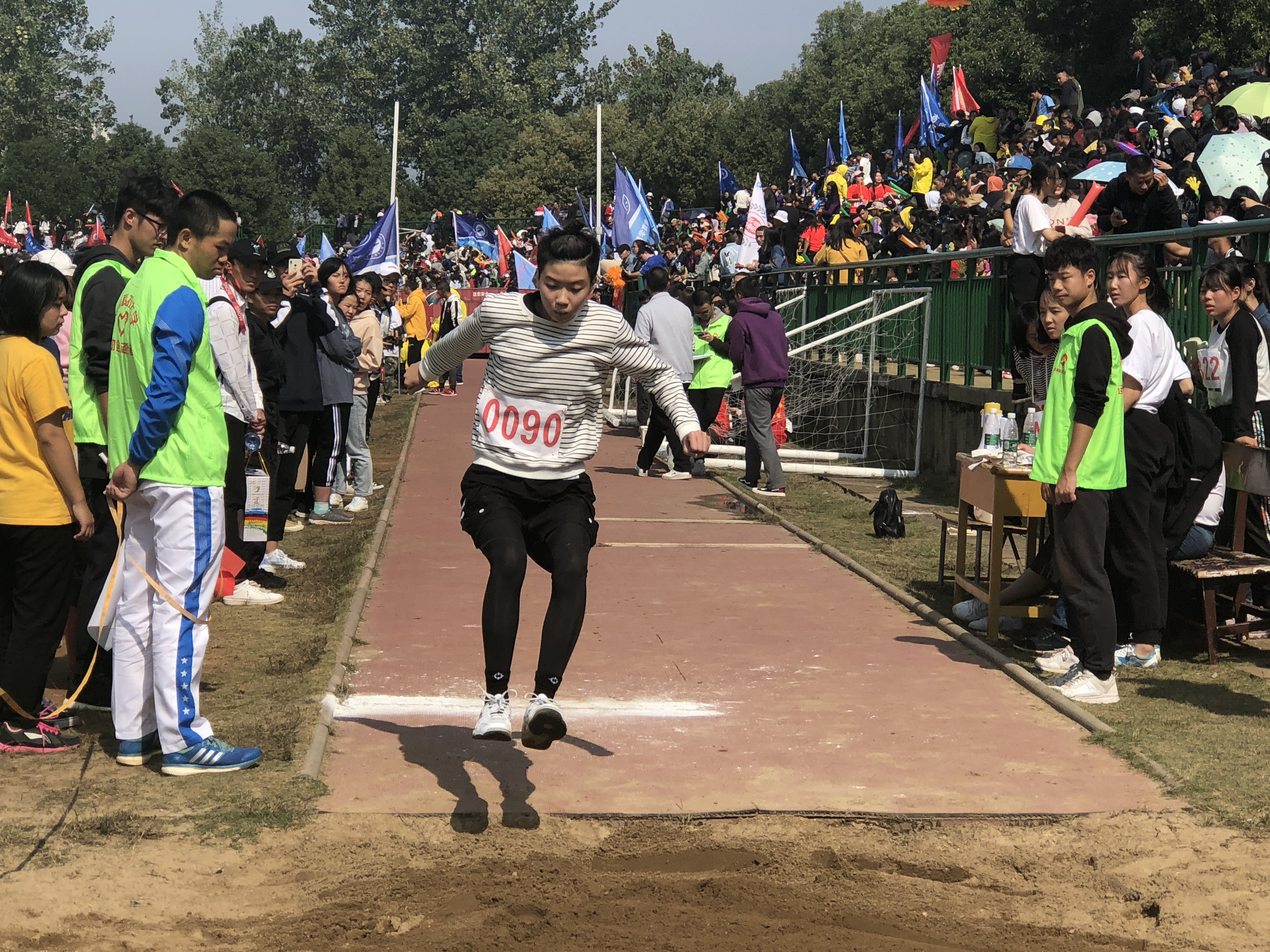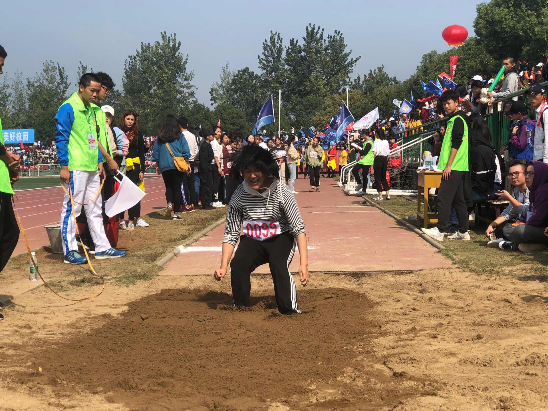 10月26日,天空一扫往日的阴霾,太阳从云端中露出。在难得的好天气下,来到女子跳远预决赛的比赛场地便可以听到观众台上同学们响彻云霄的呐喊助威声,他们用自己的方式激励鼓舞着运动员们。