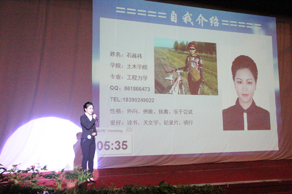 大赛在活力四射、精彩万分的开场片中拉开序幕。之后 十位选手分别上台和我们分享他们的职业规划,36365官网代表石越祎,她以美丽优雅的形象,自信阳光的演讲征服了评委和观众。坚定信念,永不退缩正是她努力的宣言。她说到,希望自己强化专业技能和英语能力,成为一名优秀的工程论文作译者。其外,还有明锐自信的的法学院代表向鹏荻分享了他的律师梦,沉稳大气的机电工程学院代表赵鹏程分享了他的CEO梦,其他学院的选手也热情洋溢的介绍了自己的职业规划,现场气氛非常活跃,雷鸣般的掌声此起彼伏。