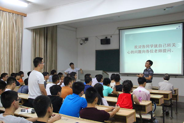 会议主要分为老师介绍和学生提问两个部分。在老师介绍部分,老师主要从专业历史、专业发展、专业内容、专业导向等几个方面做详细介绍。在新生提问部分,学生提了“在以后就业中是否还需要补充具体的专业知识?”、“女生在以后的就业或者研究中有什么劣势?”、“大学期间需要考一些什么证书?”等等问题。面对新生各种问题,老师从学习、生活、毕业等方向详细地分析并解答新生的疑问,并着重强调了新生现在主要的问题是如何养成一个良好的学习习惯,将专业知识基础学好。